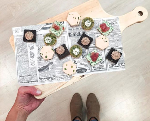 Abans de començar el showcooking, es va rebre als instagramers amb un aperitiu dels productes més nous per a aquest nadal, com les mini tartaletes salades o els mini choux de formatge.