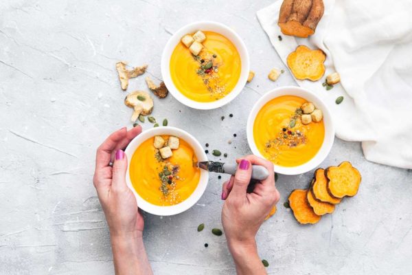 Tot i que és cert que les baixes temperatures són antònimes dels batuts i les amanides, no has d’oblidar incloure en les sopes, brous, cremes i purés que preparis, una quantitat elevada de vegetals i hortalisses com la pastanaga, les carxofes, el porro, la bleda i la carabassa. Aquests ingredients t’ajudaran a mantenir-te hidratat alhora que controlaran la temperatura corporal adequada. (Recorda que fa poc et vam explicar els nostres consells per preparar el esmorzar ideal a l’hivern!)