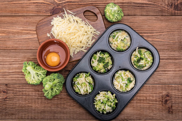 Un desayuno algo más elaborado (pero que podemos cocinar el día anterior) son los panecillos de brécol y cheddar. Son tan fáciles de preparar como mezclar una taza de brécol, media de taza de cheddar y cuatro huevos, salpimentar al gusto y cocer en un molde para muffins durante 12-15 minutos a alta temperatura hasta que se doren.
